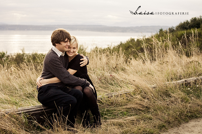 I recently took engagement photos of a couple whose wedding I will be photographing in January. We met at Seattle’s Discovery Park for the shoot. For several days leading up to that day, the weather had been typical Seattle fall weather, drizzly and gray. But they never canceled, and I thought to myself “The show must go on!” And, wouldn’t you know it, a couple of hours before our session, the clouds parted and sun appeared! About halfway through, the sun went back behind the clouds, which ended up also being nice, as it added a lovely filtered light on the couple, and no one was squinting.